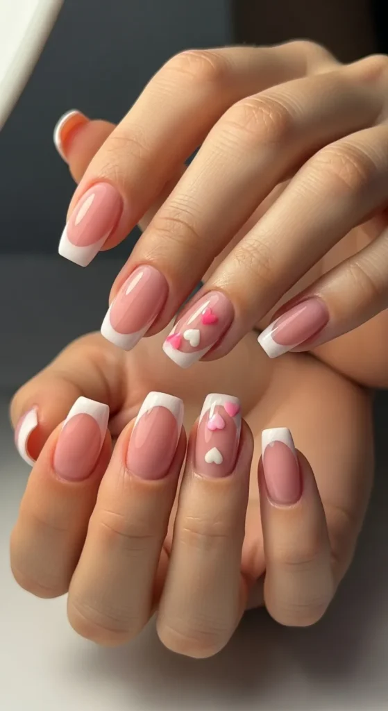 2. Baby Pink French Tips with Heart Detail