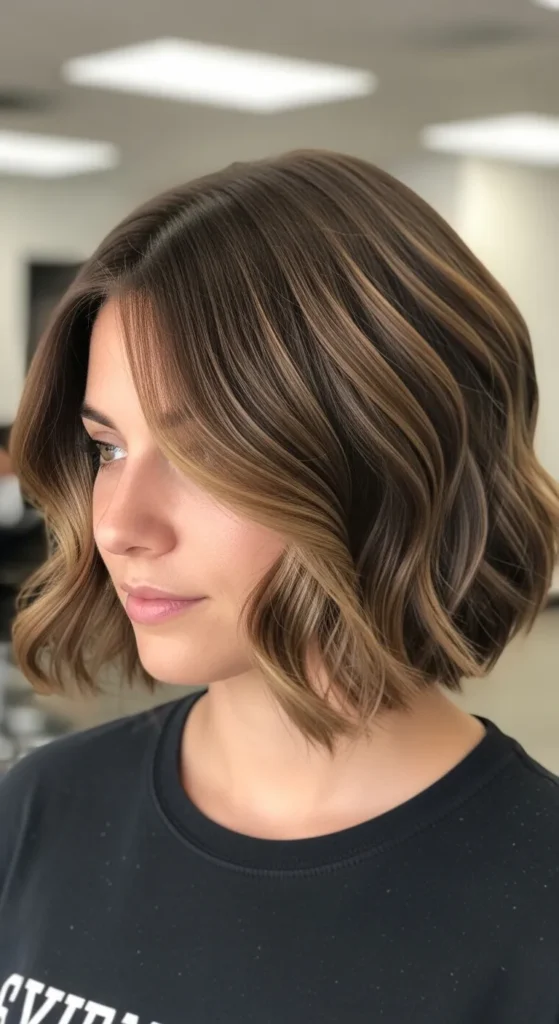Short hair and waves are a power combo. A chin-length or jaw-length bob with texture feels playful and fresh. Keep layers minimal so the waves don’t frizz, and let the natural bend do the work.