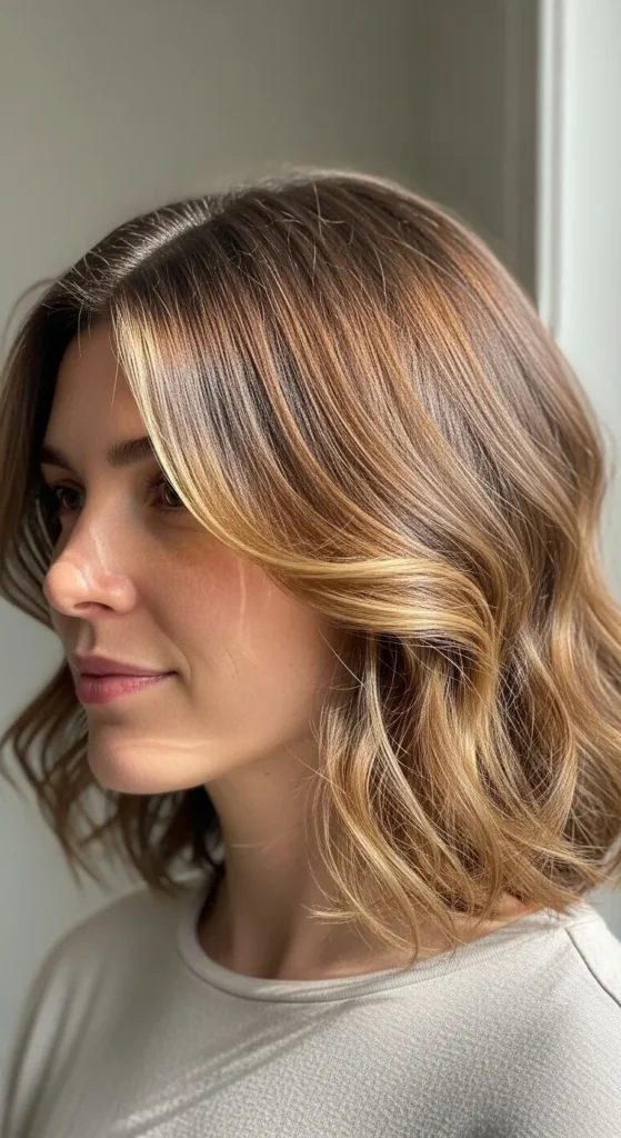 Face-framing layers instantly brighten your features and soften strong jawlines. This length is Pinterest gold because it works for almost everyone.