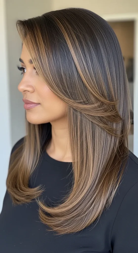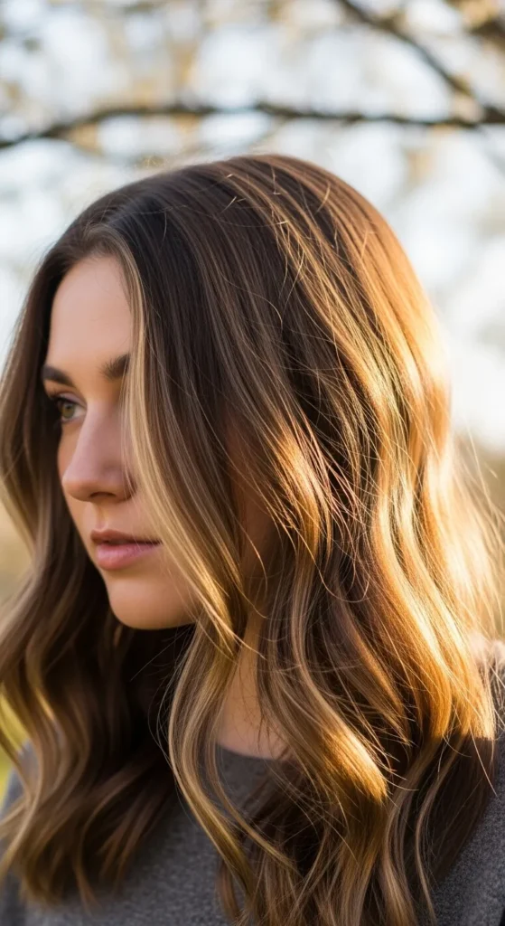 Thin caramel ribbons through brown hair create an effortlessly expensive effect.