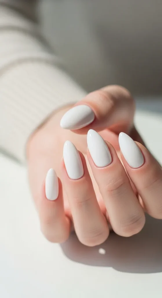 20. Classic White Almond Nails