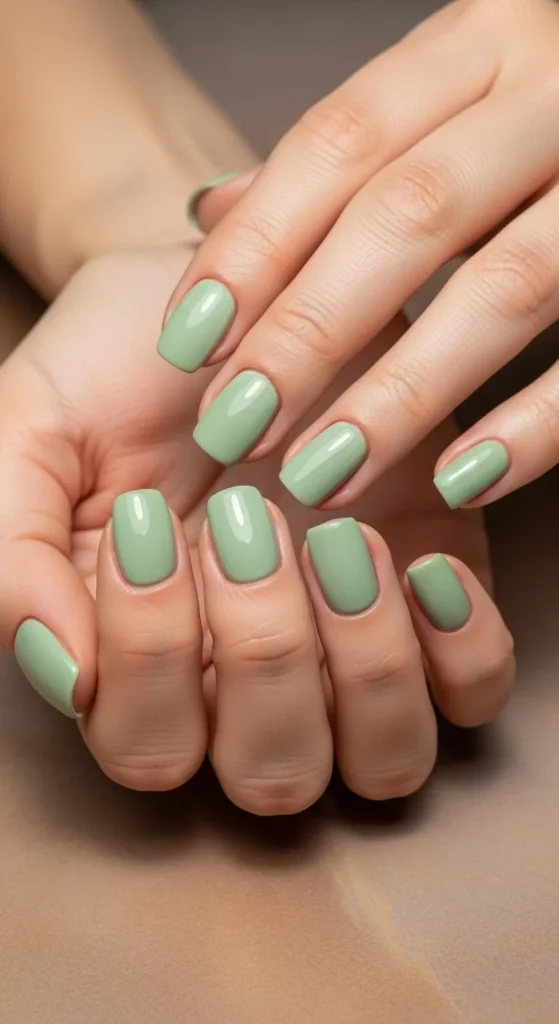 13. Soft Green Minimal Nails