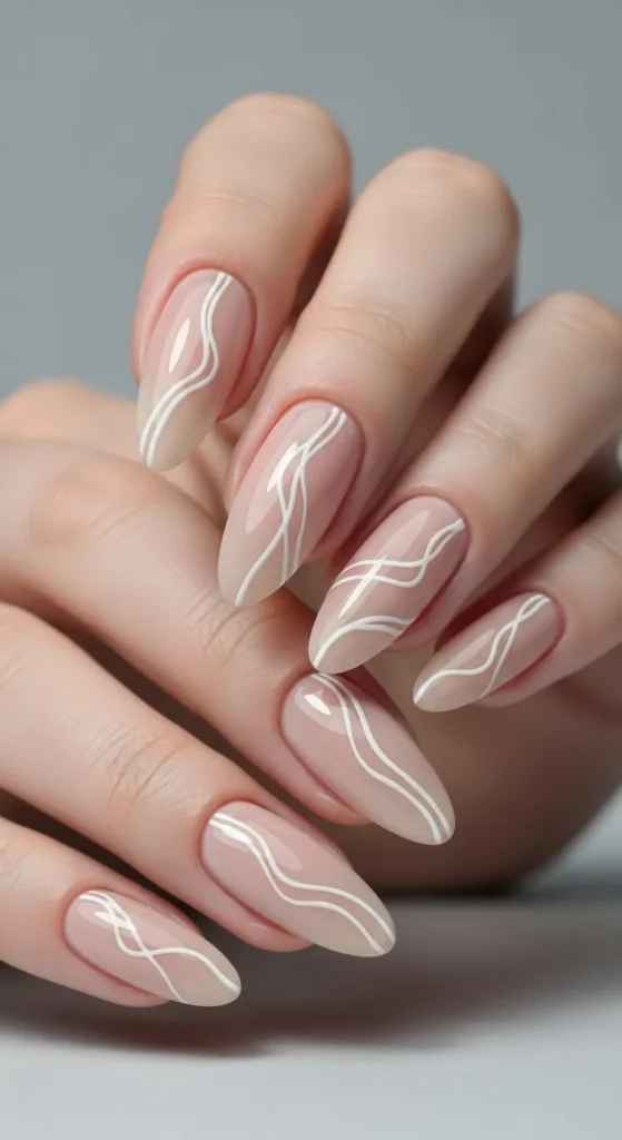 Thin black or white lines over a neutral base create a modern, editorial look. Think abstract curves or single strokes. This style feels artistic yet minimal, making it a great choice for Pinterest-worthy spring nail inspiration.