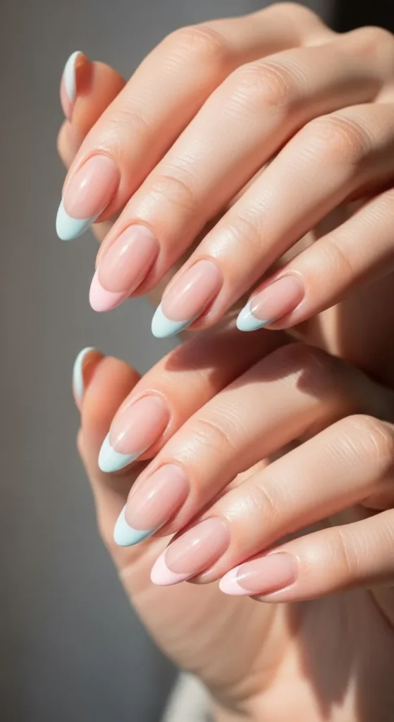 Swap traditional white tips for pastel shades like baby blue or blush. It’s a small change that makes a big impact. This spring nail design keeps the structure of classic nails while adding a soft seasonal update.