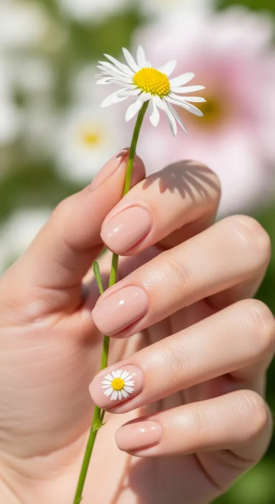 5. Minimal Daisy Accent Nails
