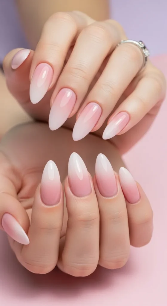 A gentle pink ombre creates a romantic and polished look. The fade should be subtle—almost barely there. This spring nail design is ideal if you love feminine nails that still feel grown-up and classy.