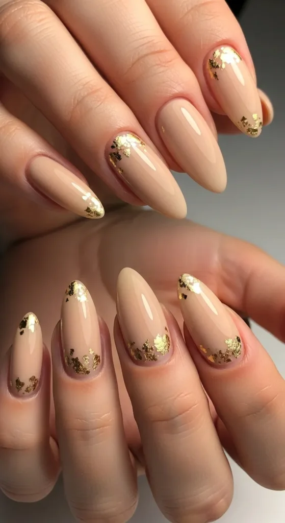 6. Beige Nails with Gold Foil Touch