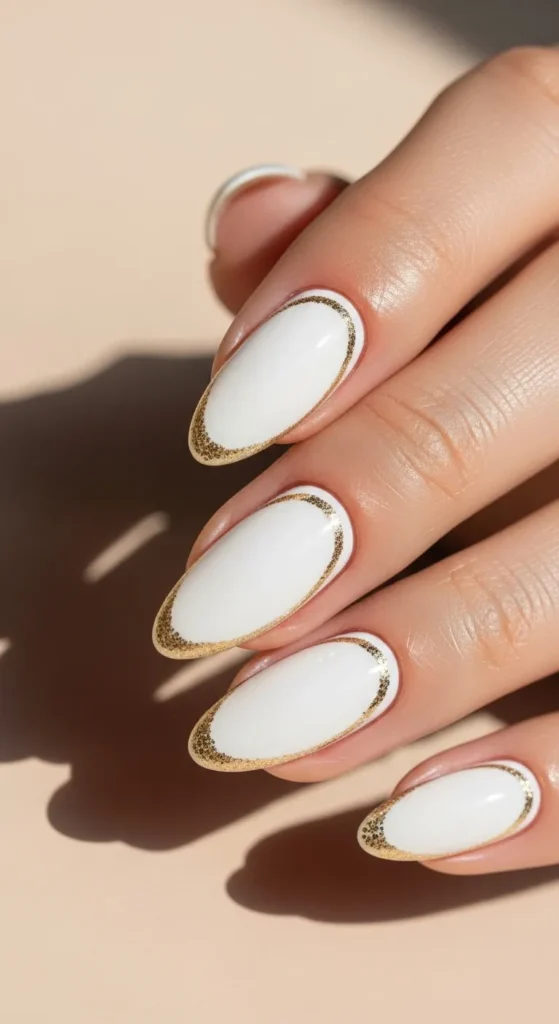 Add a thin line or dot detail near the cuticle on white nails. It’s a small design choice that makes the manicure look intentional and stylish. Perfect for minimal nail lovers who want something unique but clean.