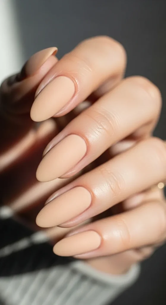 Matte finishes instantly elevate simple designs. Nude matte nails feel modern and chic without needing extra art. This is a great option if you love minimal nails but want a slightly different texture.