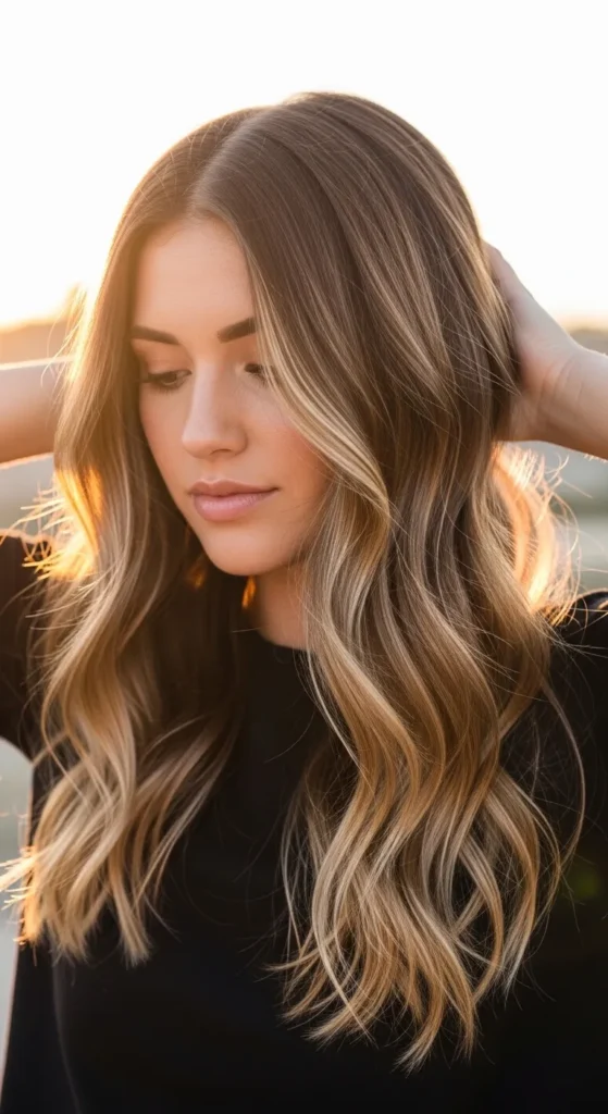 This balayage style mimics the way the sun naturally lightens hair. Light brown highlights are placed sparingly throughout the hair to create a soft, beachy glow. It’s effortless and perfect for women who prefer subtle color.