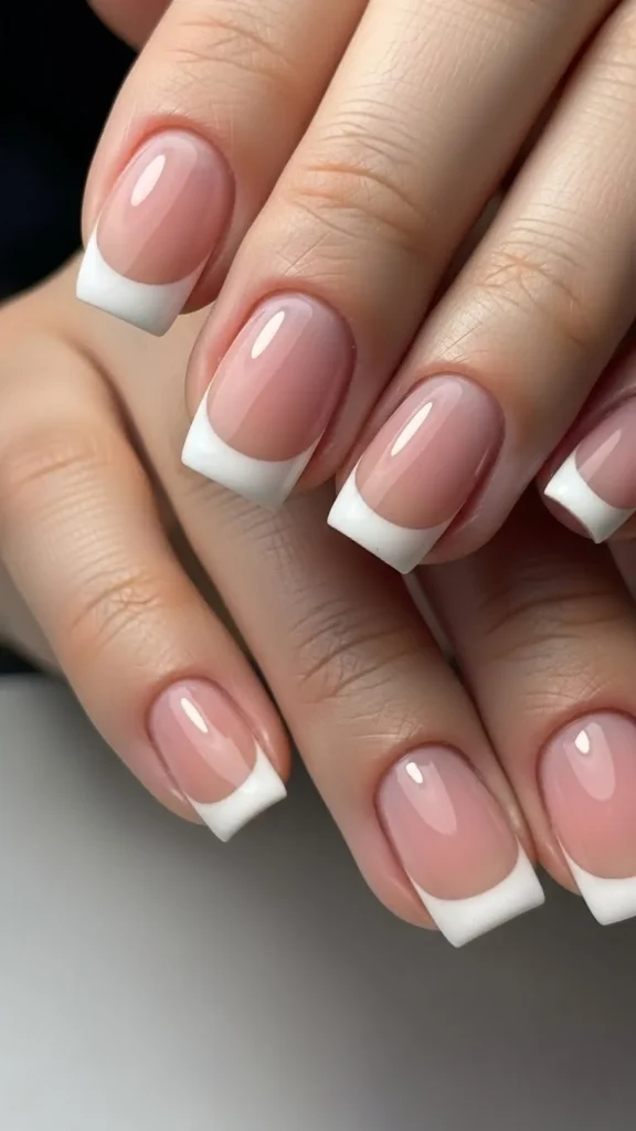 A modern upgrade to the classic French manicure. Instead of thick white tips, these feature ultra-thin lines in white, nude, or soft colors.