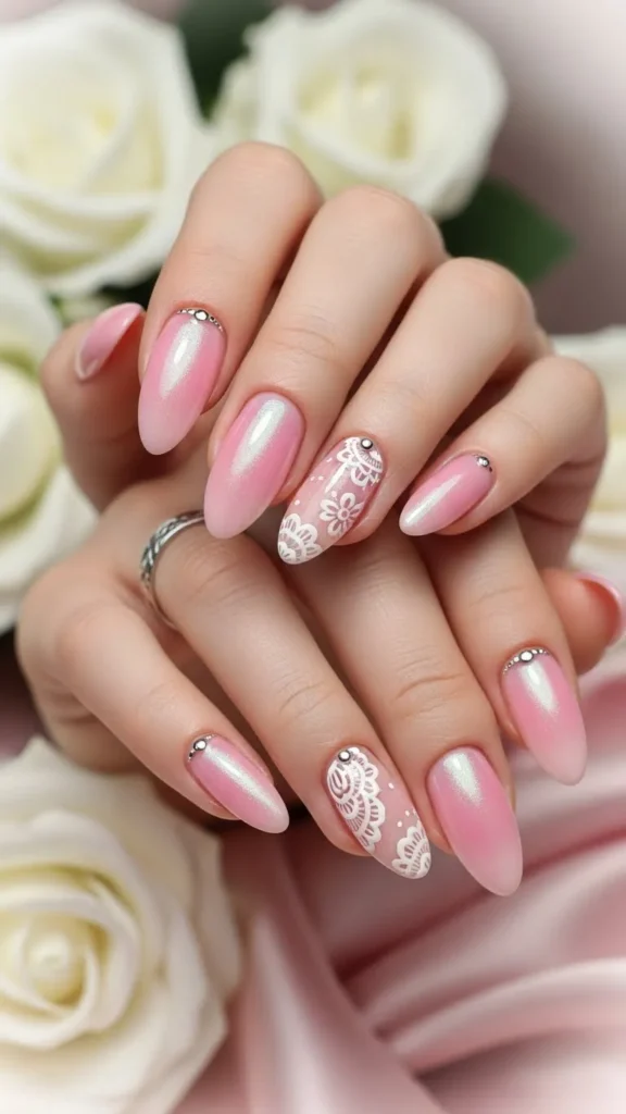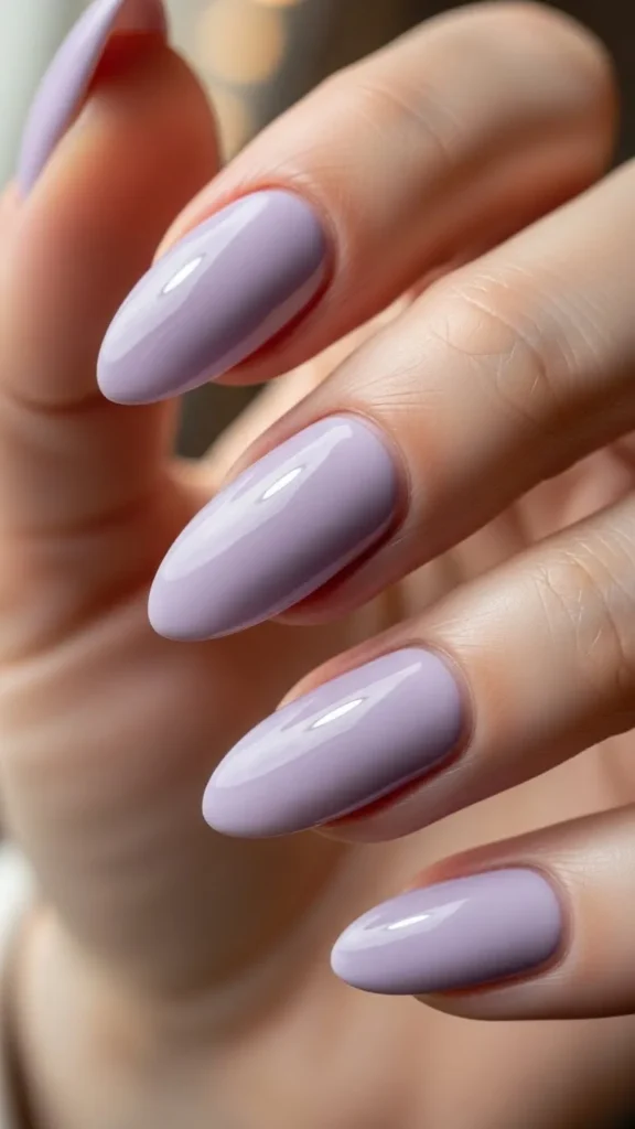 Almond-shaped nails in soft pink are feminine, flattering, and timeless.