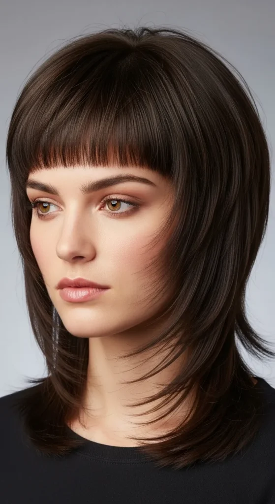 A brown shag feels rich, warm, and timeless. The layers enhance dimension, especially when paired with subtle highlights or balayage.