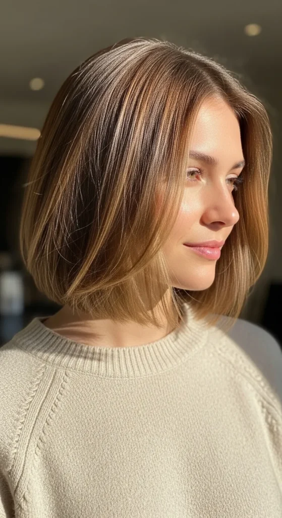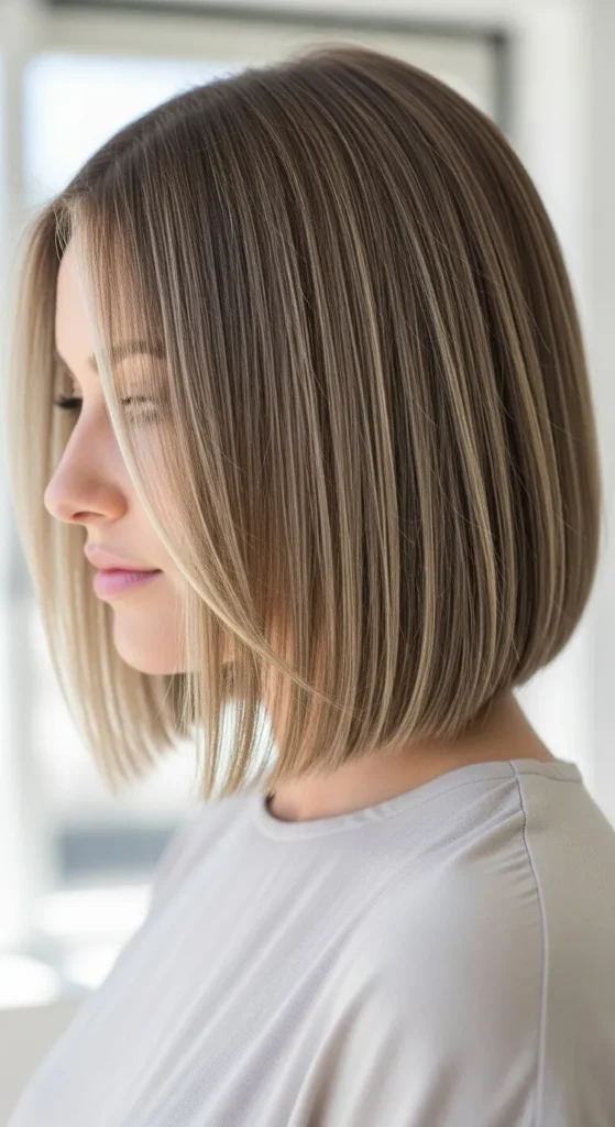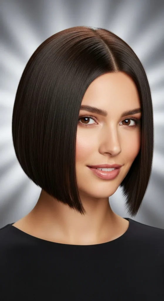 This no-fuss blunt bob focuses entirely on shape. It’s perfect for women who want fuller-looking hair without daily styling routines.