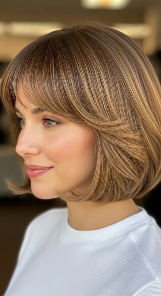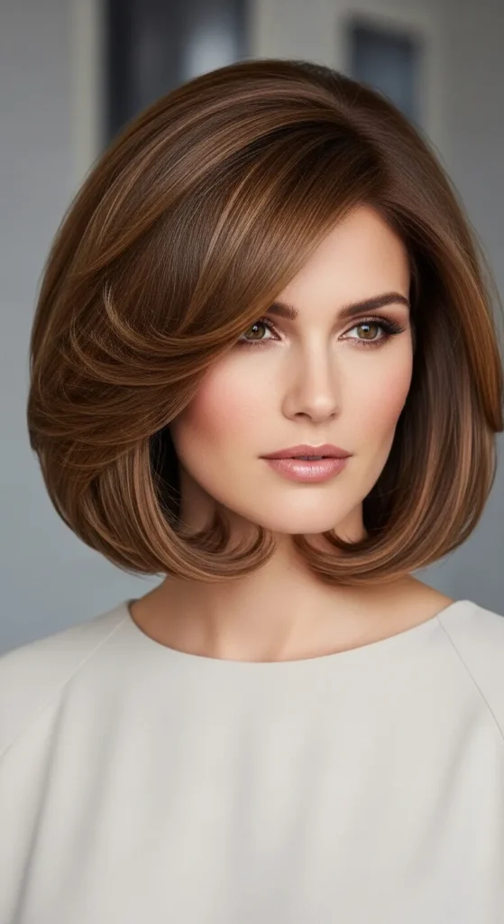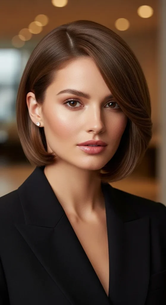 A side-part bob is the definition of understated elegance. It frames the face beautifully while adding subtle volume at the crown. This style works especially well for women who want a polished look without daily styling stress.