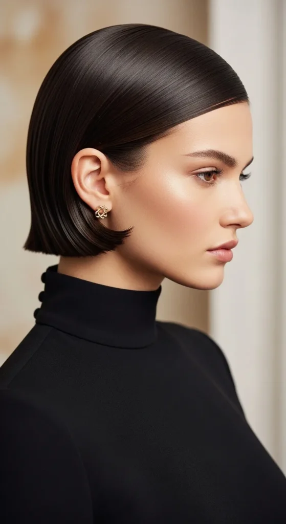 Short but sophisticated, this haircut highlights the jawline and cheekbones. It’s bold in a quiet, confident way.