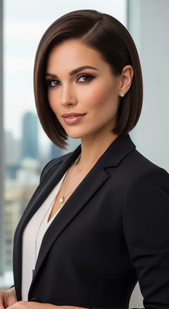 This is the power haircut of quiet luxury. Clean, structured, and confident—perfect for professional women.