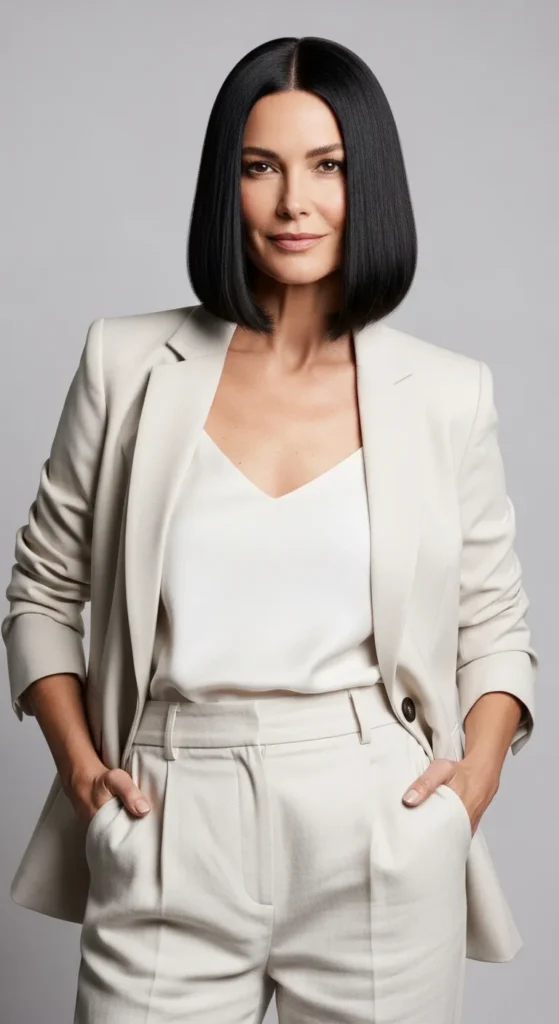 Clean, elegant, and always in style. This bob frames the jawline and gives a fresh, confident look. It’s easy to maintain and pairs well with glasses or statement earrings.