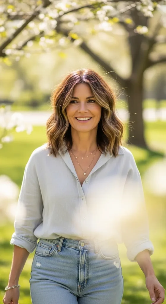 This cut adds lightness and movement—perfect for spring. Texture prevents hair from looking flat or heavy, especially for women over 40. It’s ideal if you want something youthful but still refined.