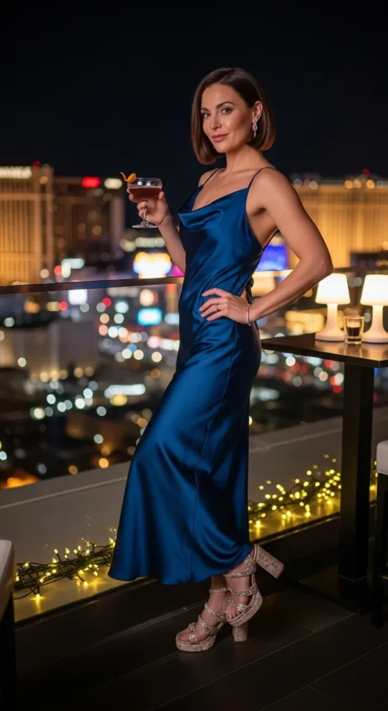 Metallic dresses were made for Vegas. Silver, gold, or chrome finishes reflect club lights beautifully and instantly turn heads.