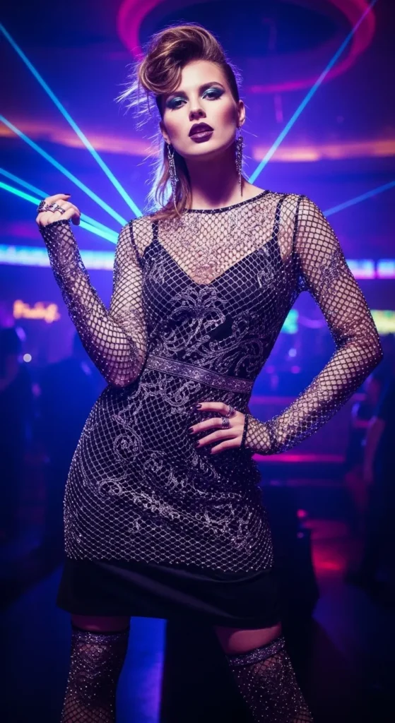 Mesh adds texture and movement. Layered over a slip dress, it creates depth that looks incredible under club lighting.