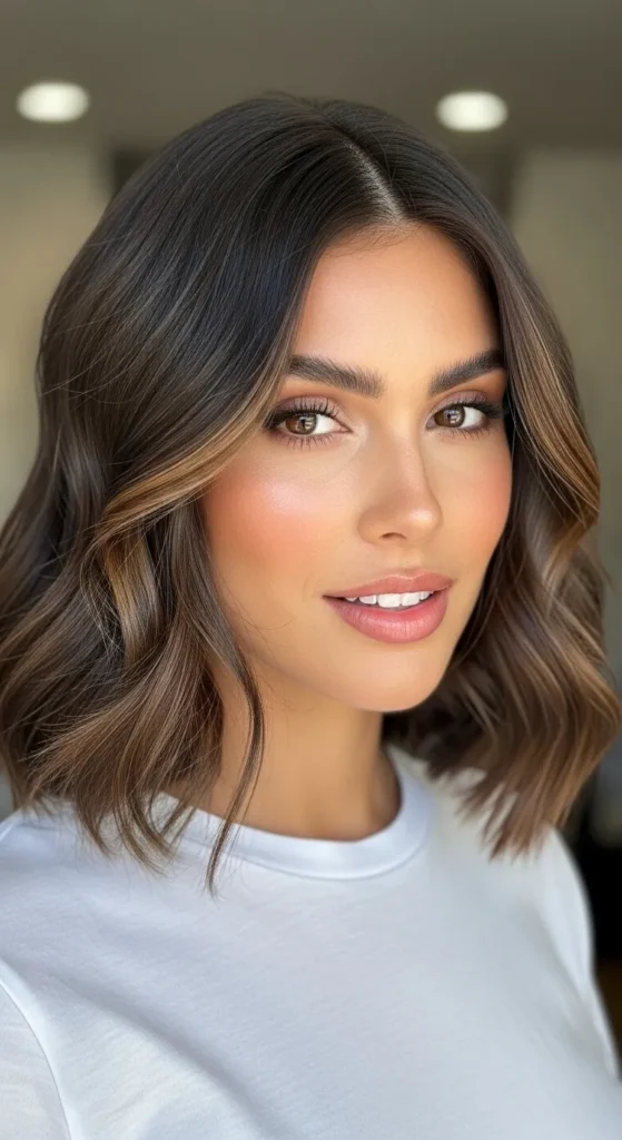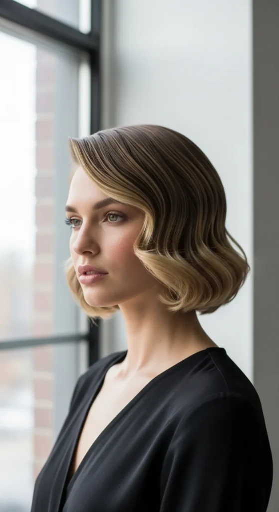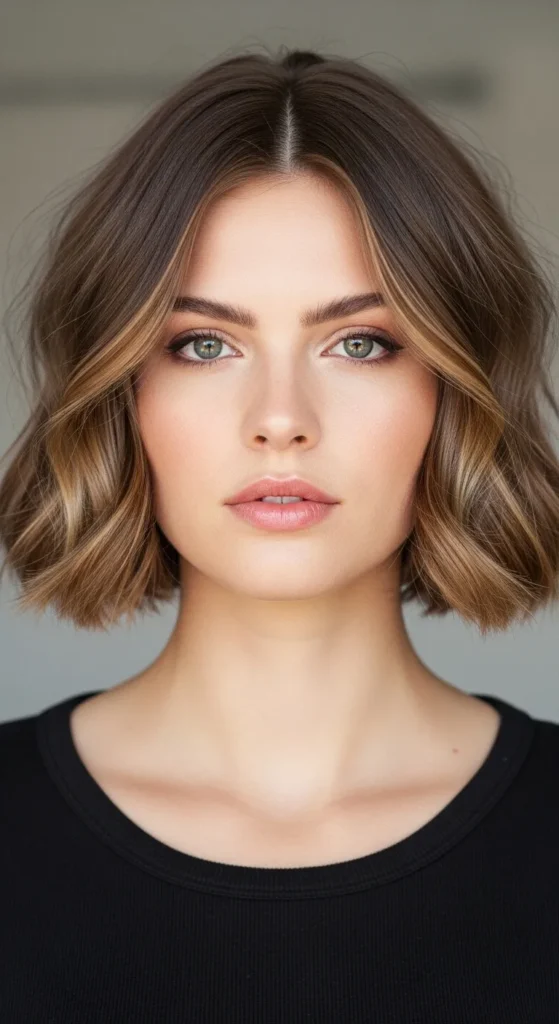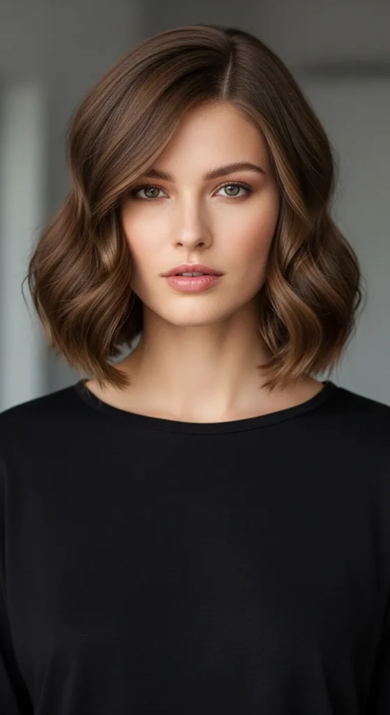 This bob hits right at the chin, creating a strong yet feminine shape. Soft waves keep it from looking blunt and help highlight the jawline. It’s perfect if you want short hair that feels confident but not harsh.