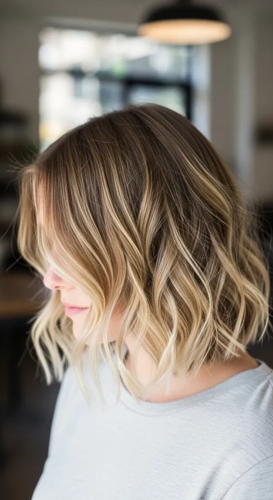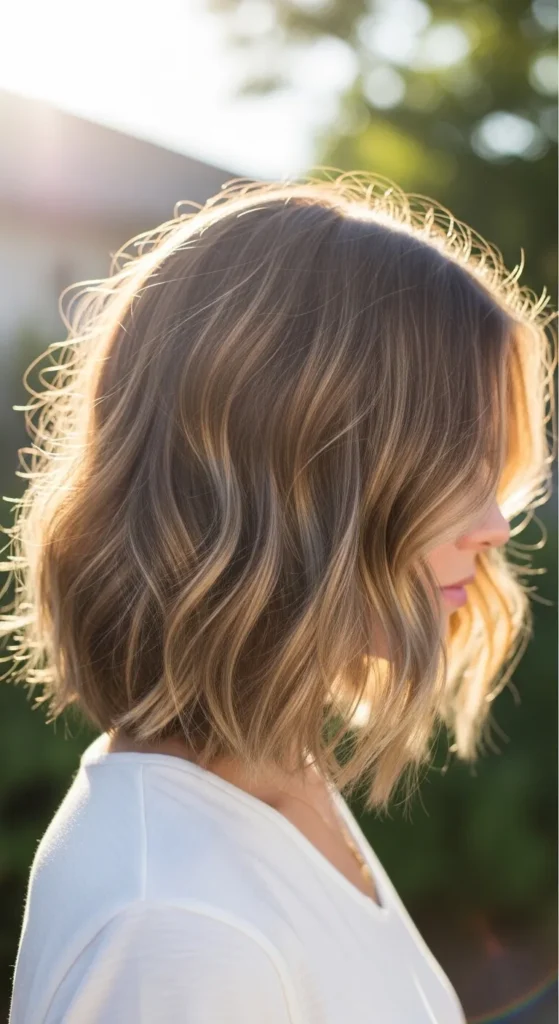 2. Textured Wavy Bob with Light Layers