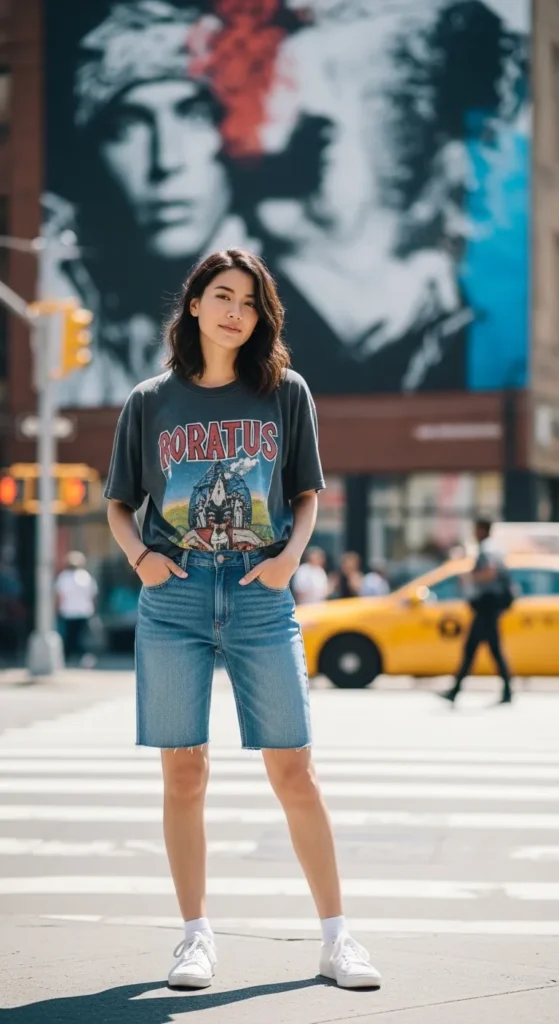 Vintage tees add personality and authenticity. Pair with relaxed jorts and sneakers for a cool, effortless outfit that feels collected over time.