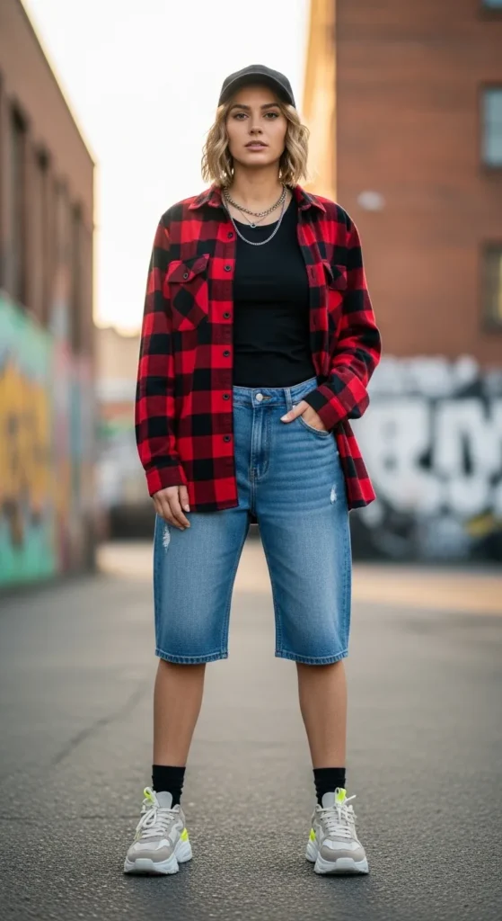 A classic streetwear combo that never fails. Pair relaxed jorts with an oversized graphic tee and sneakers for an effortless everyday outfit.