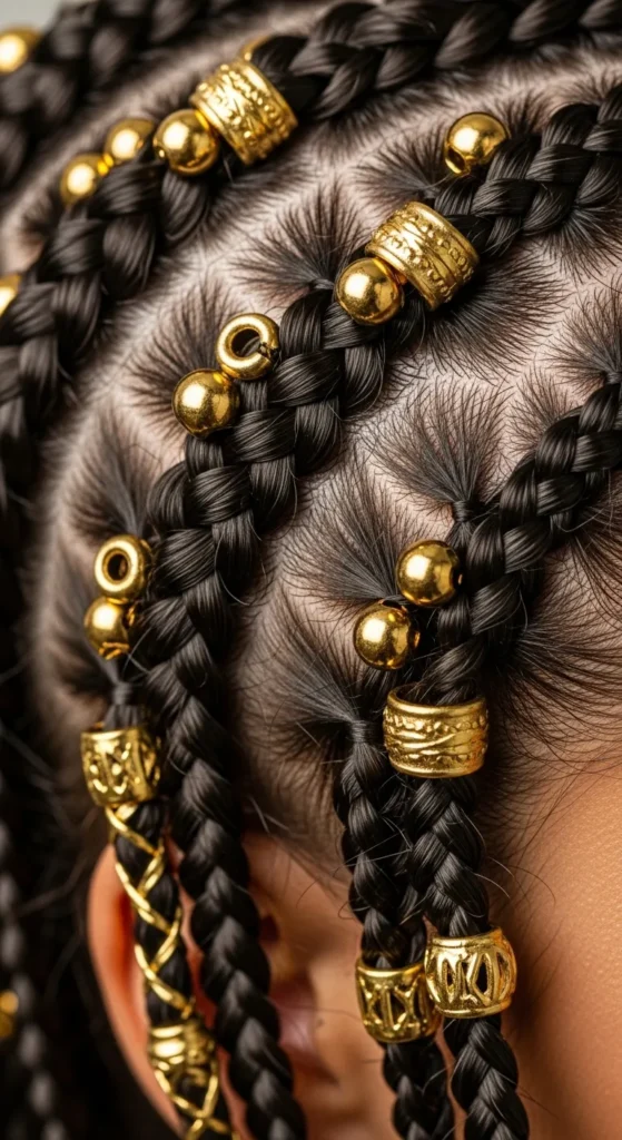 Gold cuffs instantly elevate any braid style. They add shine, texture, and a luxury feel without extra styling. Perfect for women who want simple braids to look intentional and high-end.