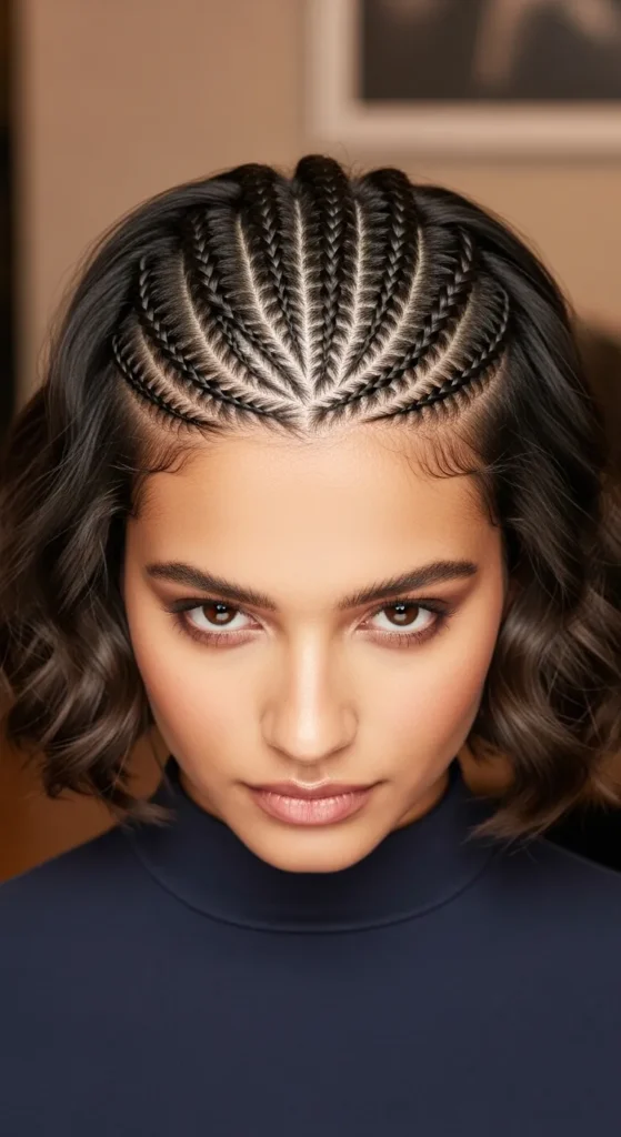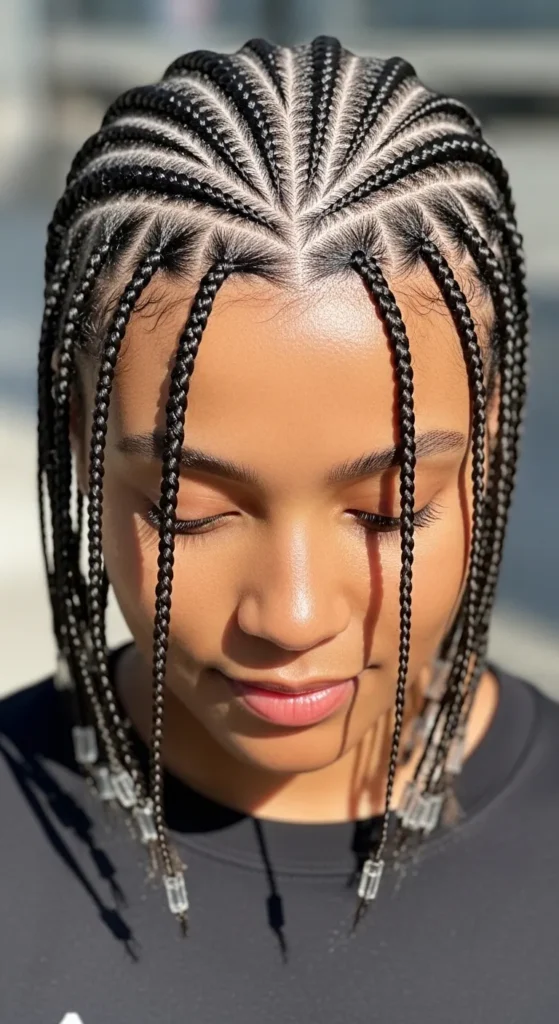 Mixing cornrows and loose braids creates visual interest and texture. This style feels dynamic and modern, making it a Pinterest favorite. It’s also practical — neat at the scalp, flexible in styling, and long-lasting.