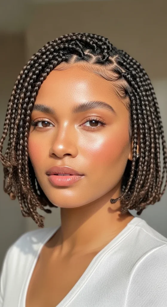 Short braids don’t have to be boring. Adding layers gives movement and shape, making the style feel intentional and fashion-forward.