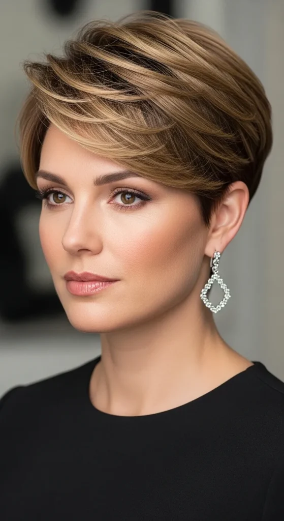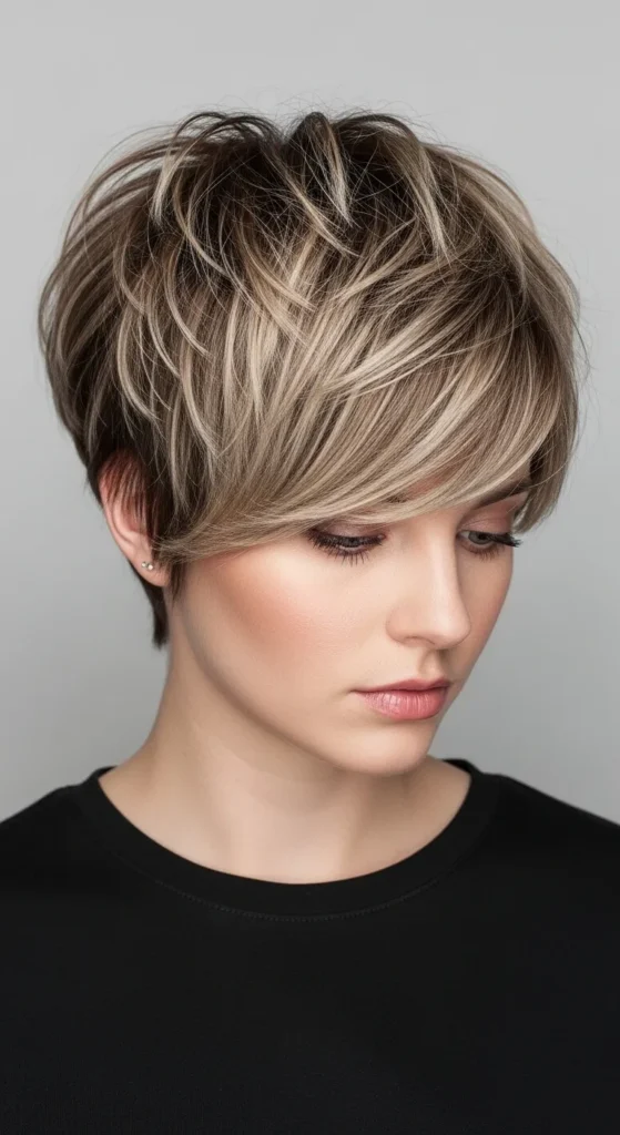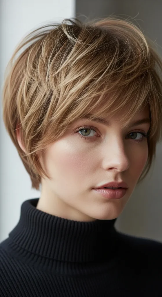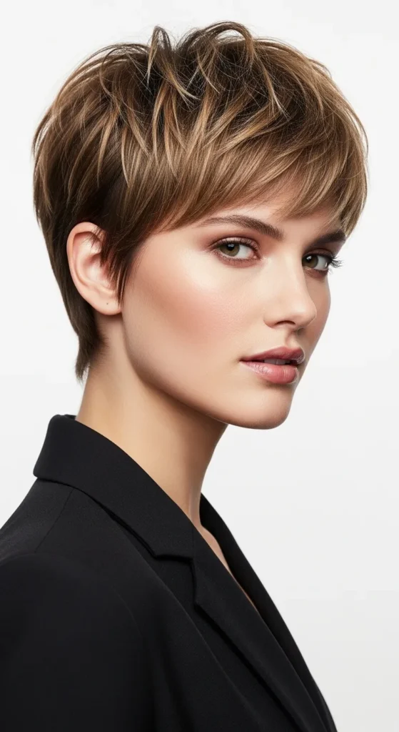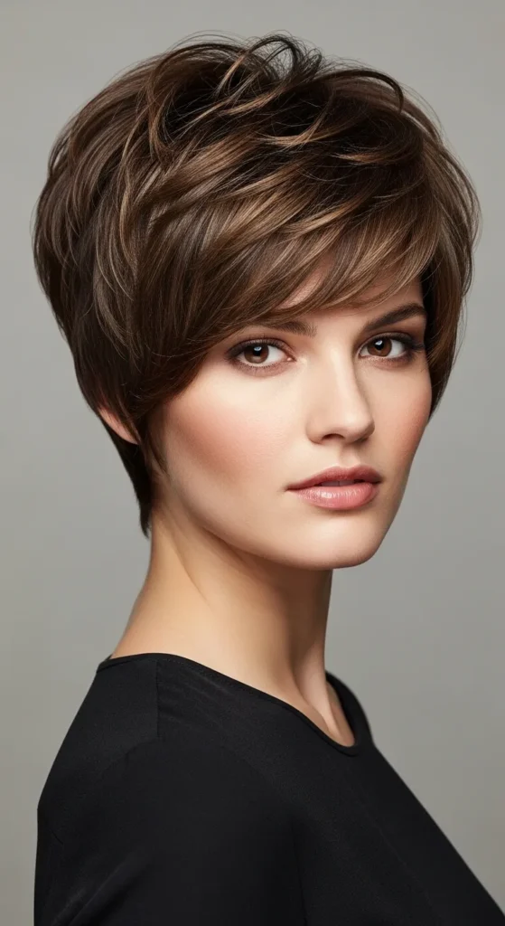 This pixie uses feathered layers to add gentle movement without thinning the ends.