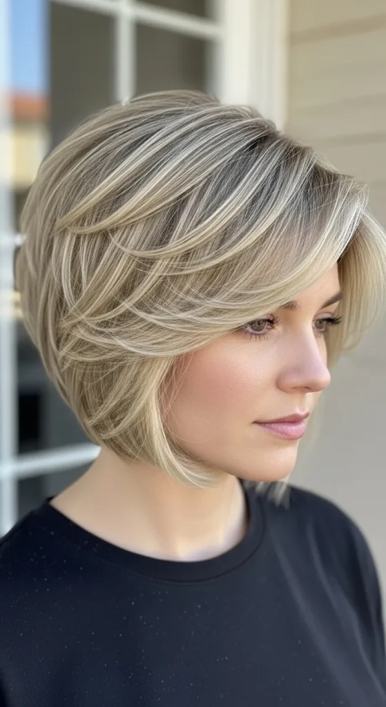 Keeping length at the crown adds lift and styling flexibility. This version works beautifully for fine hair that goes flat quickly.