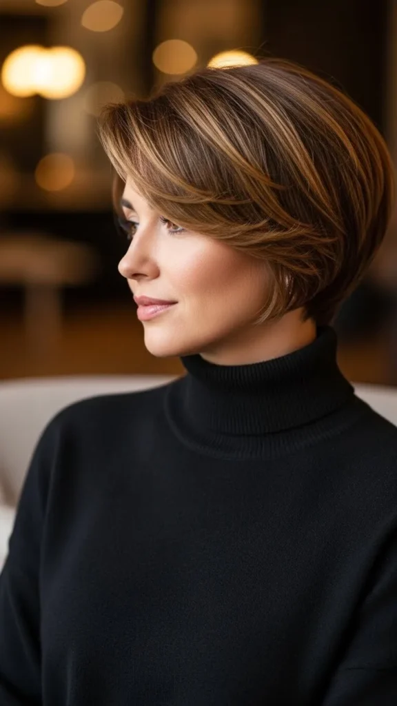 Ideal for thin hair to appear fuller, this edgy look is perfect for casual or professional settings. Add soft highlights for extra dimension.