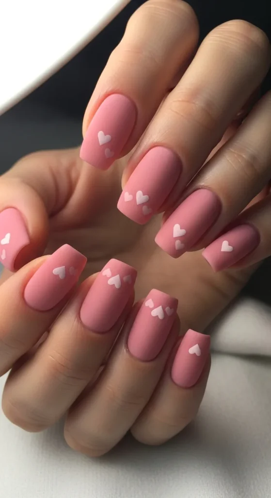 Matte pink finishes feel soft and sophisticated, especially when paired with tiny heart details.