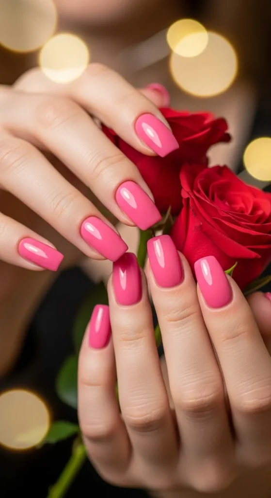 Glossy pink nails are trending across Pinterest and Instagram—simple, feminine, and timeless.