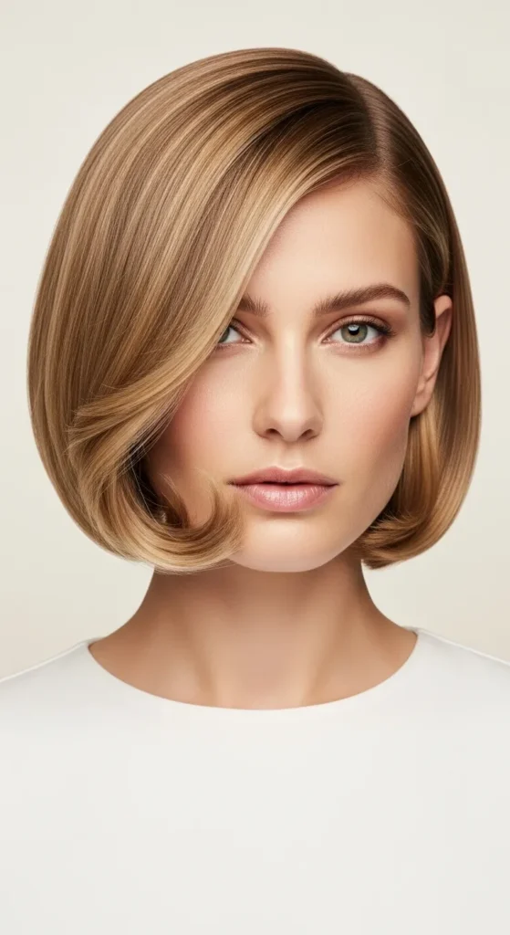 The soft curved bob is the definition of polished femininity. The ends are gently curved inward — think a subtle C-shape — which makes the style look intentional and elegant.