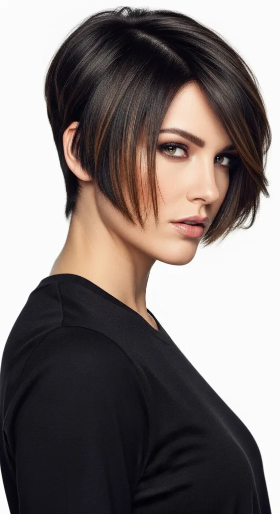 It’s a bold, confident cut that works beautifully for women who love low-maintenance styles that still feel polished and put-together.
