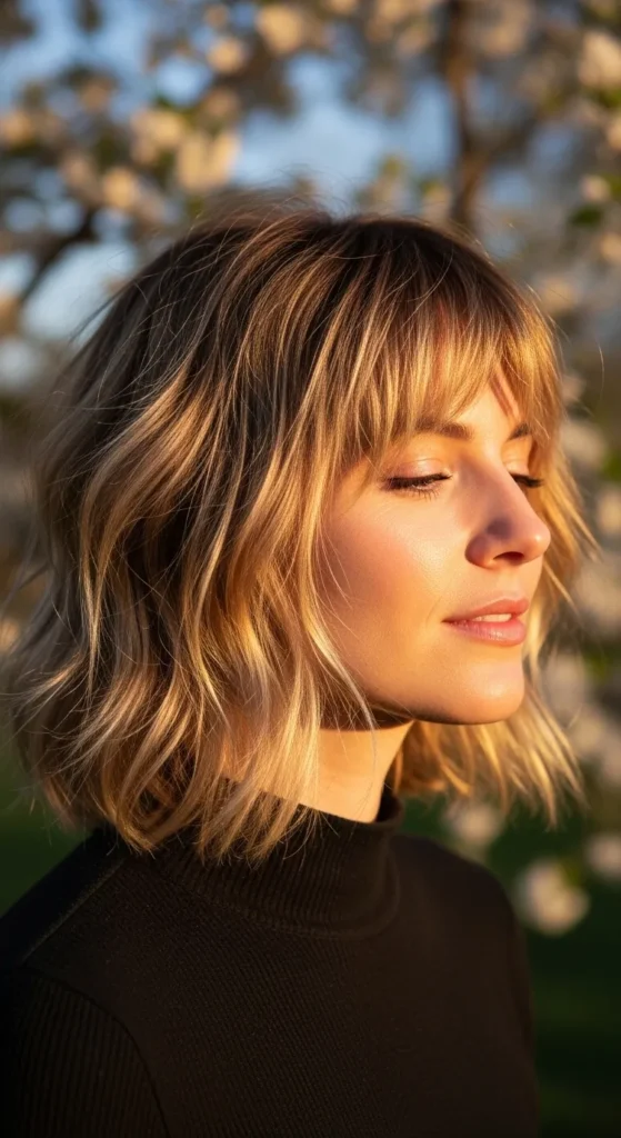 Take a choppy bob and add a spring color upgrade — honey balayage, coppery highlights, or a pastel money piece — and you’ve got a look that practically goes viral on its own.
