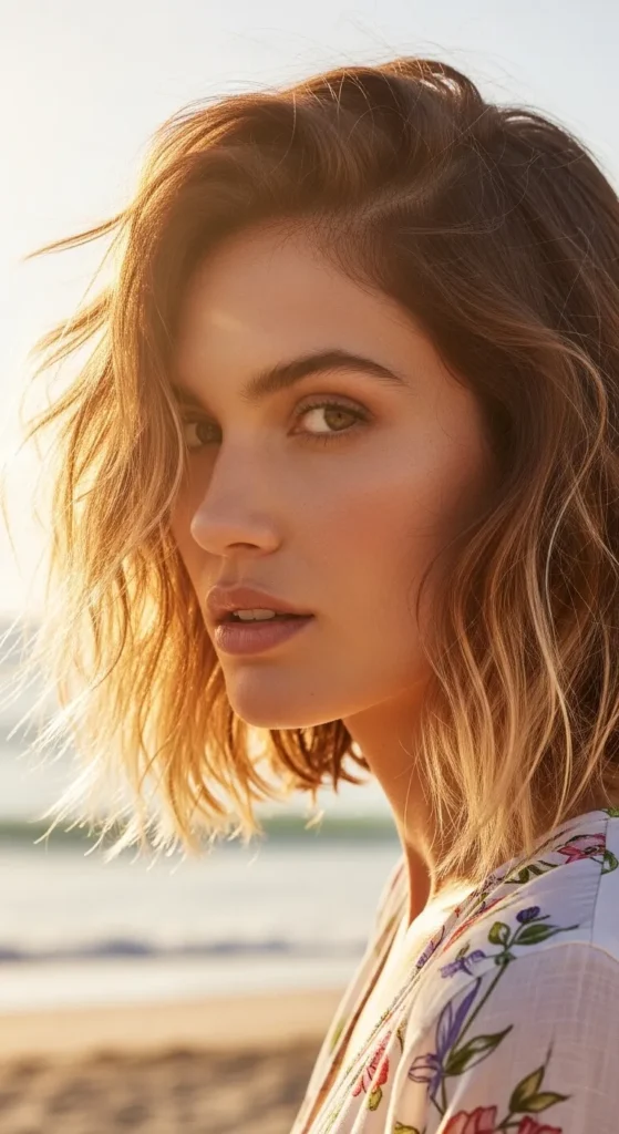 Think salt-sprayed, sun-kissed, and completely carefree. The beachy tousled bob is all about lived-in texture and movement.