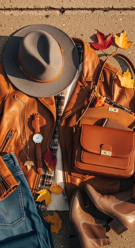 24. Brown Leather Jacket + Fall Accessories