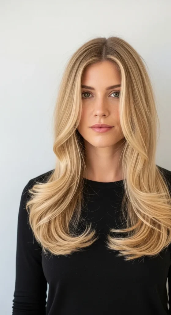 Below, you’ll find 26 Long Blonde Hairstyles that visually boost volume, add dimension, and photograph beautifully.