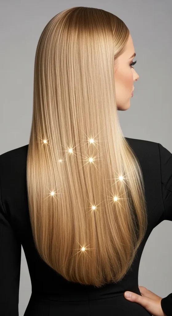 Shine equals thickness. Healthy, glossy blonde hair reflects light evenly, making strands look more substantial.