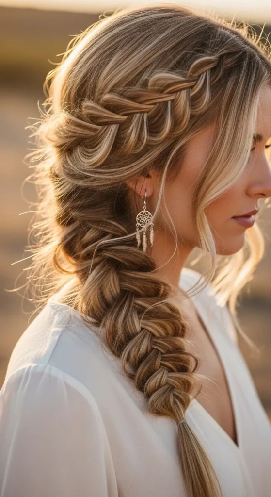 Loose braids add texture and bulk. Gently pulling them apart creates a fuller appearance while keeping the look soft and romantic.