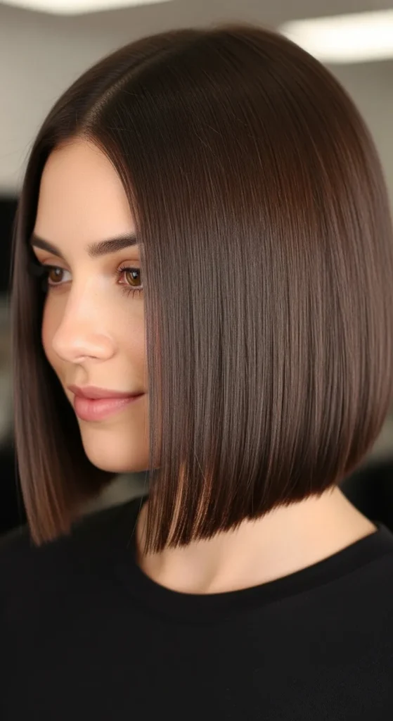 This style looks blunt at first glance but hides internal layers for movement. You get the clean look of a blunt bob with the comfort of volume and flexibility.
