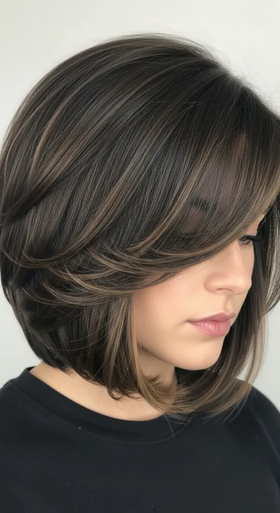 A deep side part instantly adds drama and volume to a layered bob. It’s an easy styling trick that changes the entire look without cutting more hair. Perfect for women who want a quick refresh.