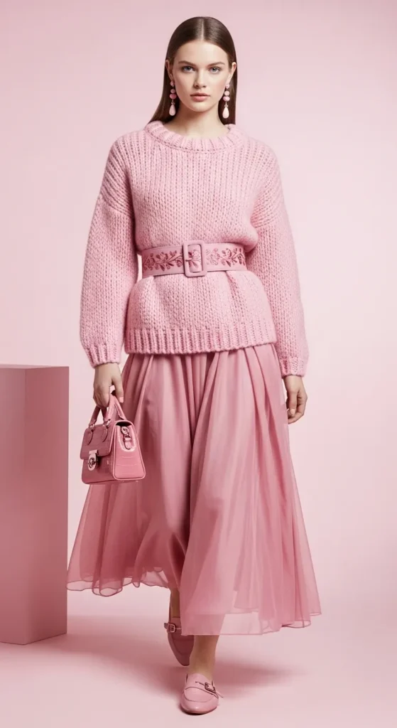 Head-to-toe pink is bold, confident, and extremely Pinterest-friendly. Mixing textures keeps the look elevated and fashion-forward.