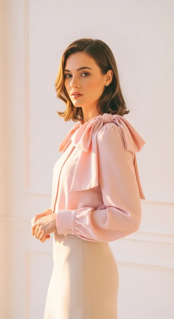Bows are trending hard this season. A bow-detail top feels feminine and playful.