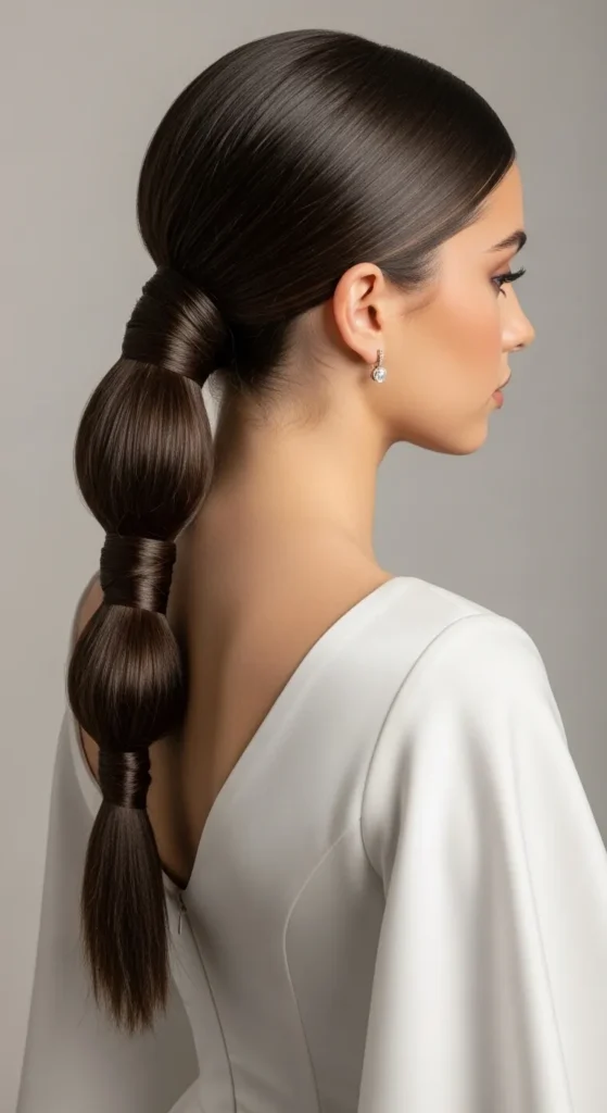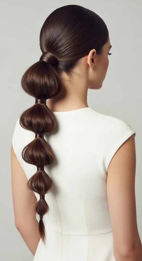 Bubble ponytails are trendy and playful while still formal enough for prom. This look works best on long hair and pairs well with minimalist dresses.